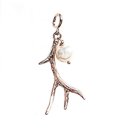 Geweihanhänger m. Süsswasserperle 925er roseverg.